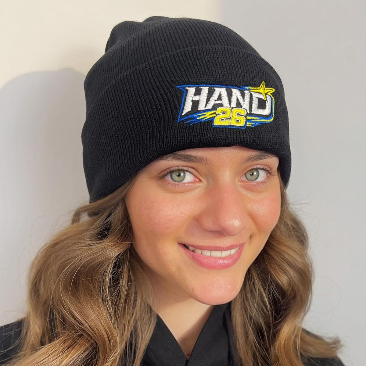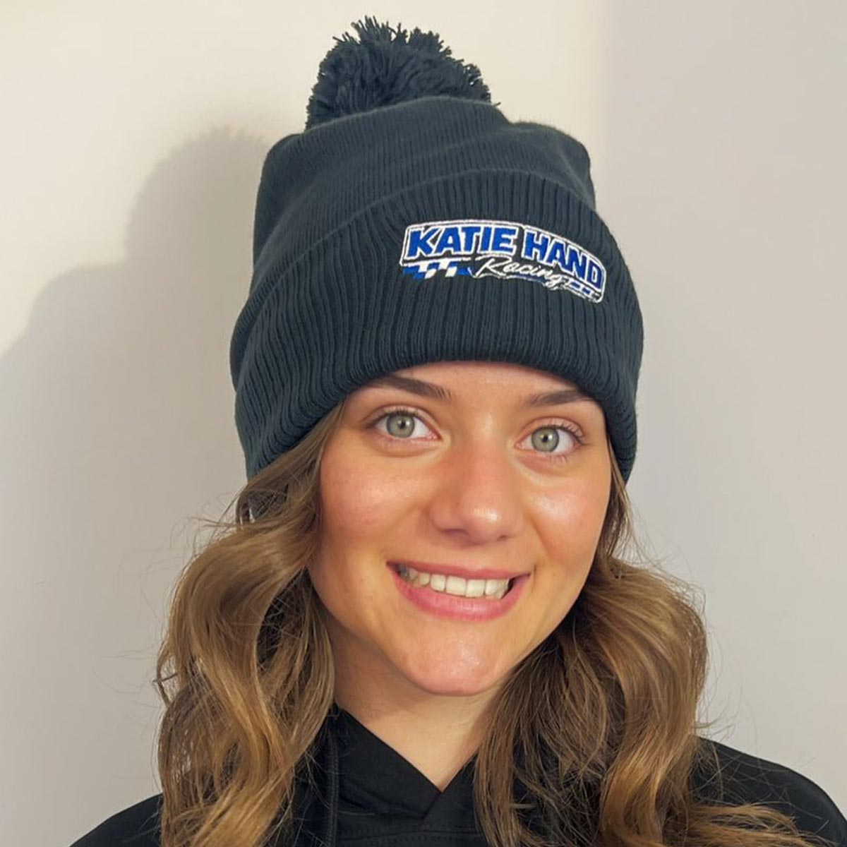 Show your support in standout style with this LIMITED EDITION Katie Hand Racing bobble hat.
